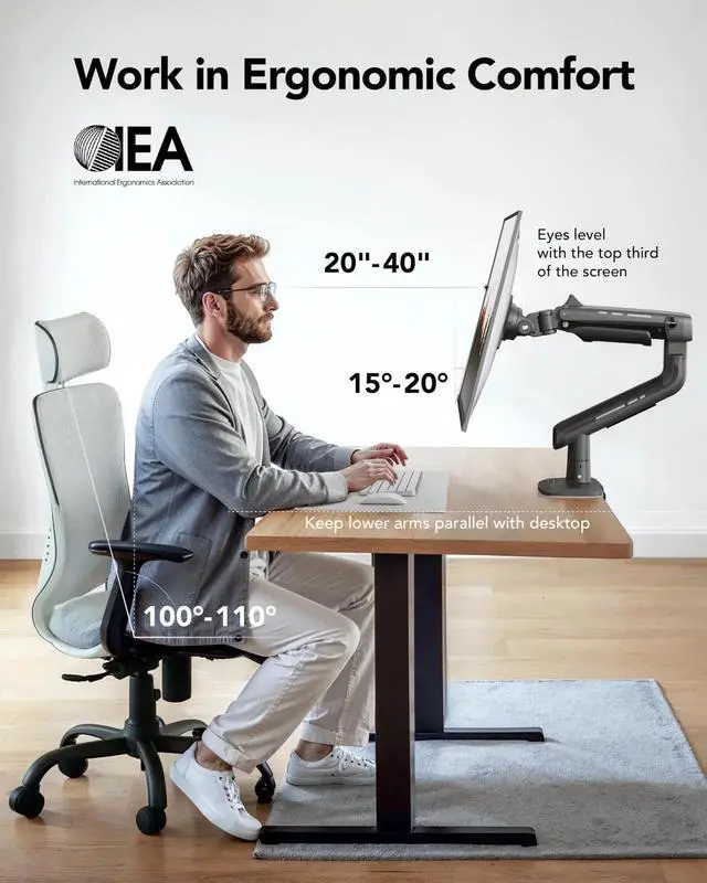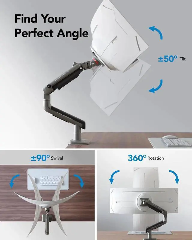 HUANUO TitanLift Heavy Duty Monitor Arm for Ultrawide Screens up to 49", Holds 40 lbs, Aluminum Ultrawide Screen Desk Mount, Fully Adjustable Single Monitor Mount with Dual C-Clamp, Max VESA 100x100