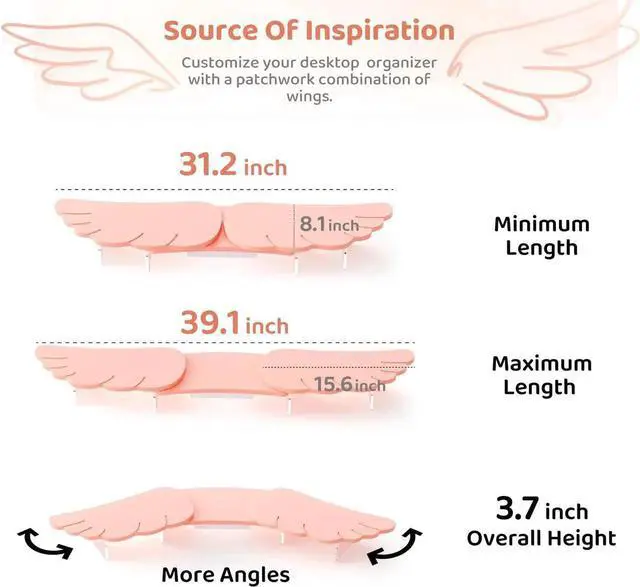 New design: Freely adjust the angle as you need, especially change the angles of the end pieces. The length can be adjusted from the minimum 26.7 inch to the maximum 36.6 inch. Wing Middle Shelf dimensions 13.1 x 7.7 inch, Wing Right/Left Shelf dimensions 15.6 x 8inch, holds up to 66 lbs.