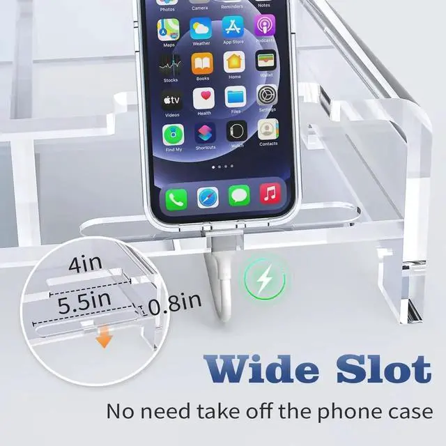 Acrylic Monitor Stand 2 Tier, Rocfinity Clear Laptop Stand for Desk With Pen Holder, 20"W for All Keyboards, Acrylic Laptop Riser with Storage, Monitor Stand Riser with Phone Holder, Desk Organizer for Home Office, PCs-2 Pack