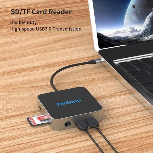 USB C Hub Docking Solution, Delippo 8 in 1 with Charger dongles Gigabit Ethernet Port, PD Type C Charging, 4K HDMI, 1080 VGA, SD TF Card Reader, 2 USB A Ports
