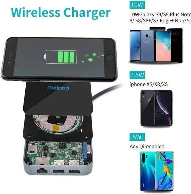 10W Wireless Charging-Board CompatibilityOne step fast charge your Qi-certified devices. Just place your device on the hub and let the power flow. 10W Max WPC 1.2(Transmitter). Compatible with iPhone 8, 8 Plus, X, Xs,Samsung Galaxy Note 5, 8, Samsung Galaxy S9, S9+, S8, S8+, S7, S7 edge, Samsung Galaxy S6, S6 edge, S6 edge+, S6 active, LG G6, V30, V30S, V35 (US version), Sony Xperia XZ2
