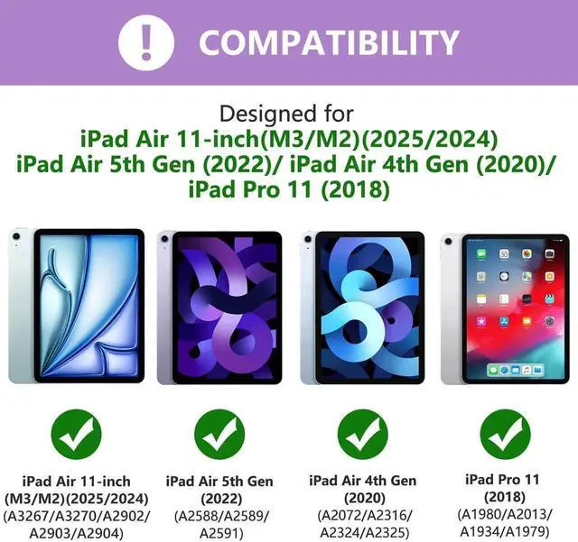 TQQ Keyboard Case for iPad Air 11-inch (M3 2025 / M2 2024) & Air 4th/5th Gen, Magnetic Wireless Detachable Keyboard, Stand Folio Cover with Pencil Holder, Thin & Light (Purple)