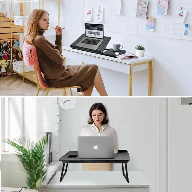 Laptop Desk for Bed Couch, Lap Desk for Laptop, Portable Laptop Stand for Desk, Small Adjustable Laptop Desk, Foldable Bed Table for Laptops and Writing, Bed Tray Table with Cup Holder (Black)