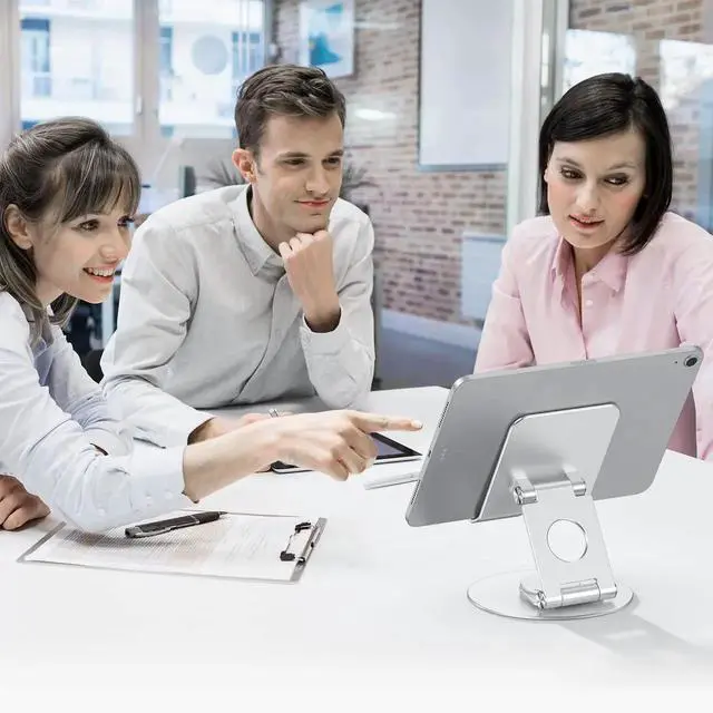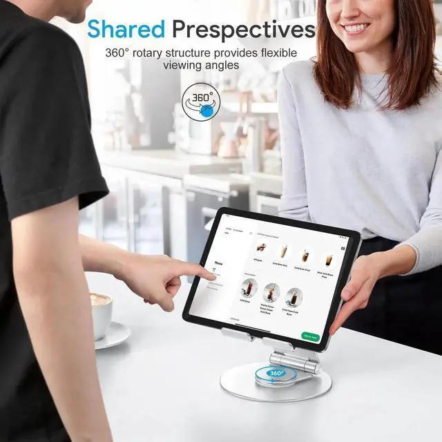 360°RotationWith a 360°rotating base, you can easily share your creation or business ideas with one-hand direction control. No need to move the traditional tablet stand back and forth like before