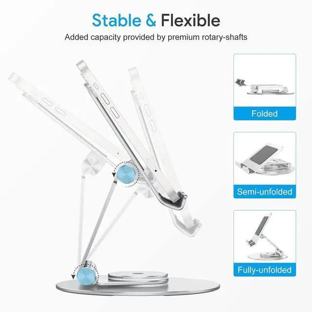 Wide Compatibility This tablet stand is compatible with various devices, including iPad/ iPad Air/ Pro/ Mini, Samsung Galaxy Tab, Android tablets, smartphones, etc. If you use this swivel tablet holder for iPad Pro 12.9/ tab s8 ultra, we suggest that you set it horizontally or find a suitable angle to make it not wobble.
