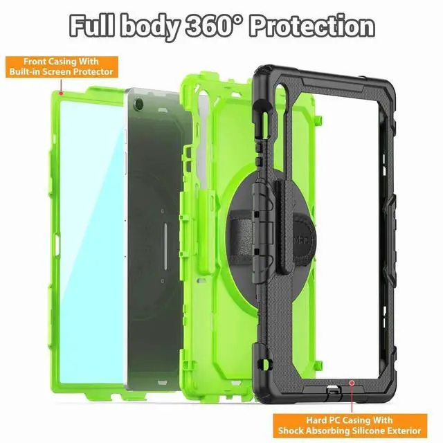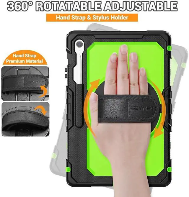 SEYMAC Case for Samsung Galaxy Tab S10 FE+/ S10 FE Plus 5G 13.1 2025, Heavy Duty Full-Body Shockproof Protective Case with Screen Protector, Stand, Hand/Shoulder Strap and Pen Holder, Green