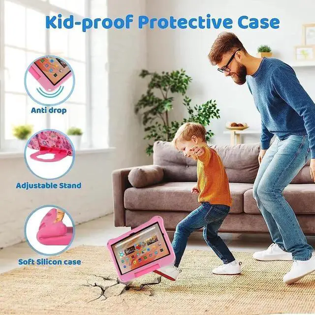 Simicoo Kindle Fire HD 10 Tablet Case for Kids Boy Girl Princess Light EVA Foam Shockproof Kids Case with Stand Handle Kid-Proof for Fire HD 10 10.1 11th 13th Gen 2021 2023 Kid Pink