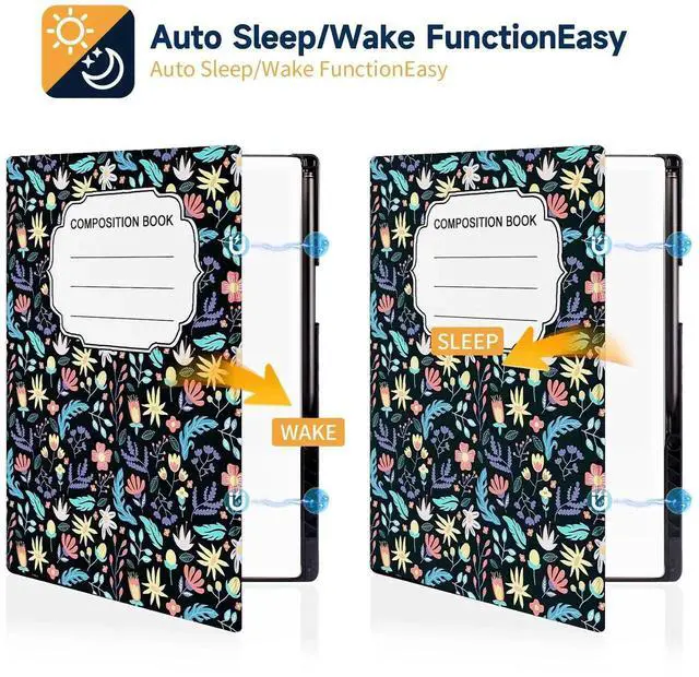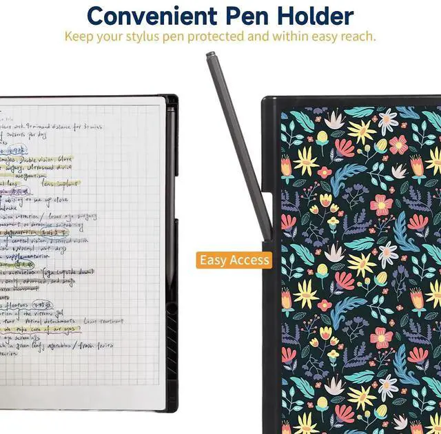 QIOFEARTH Case for Remarkable Paper Pro Tablet 11.8" (2024 Released) Lightweight and Hard Back Shell Protective Book Folio Cover, Have Auto Sleep/Wake, Pen Holder and Pen Tips Box (Flower Book)