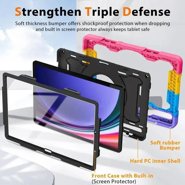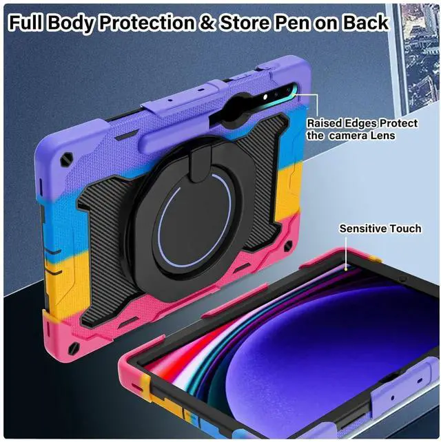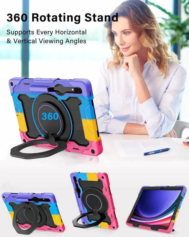 ROISKIN Case for Samsung Galaxy Tab S10 Plus/ S9 FE Plus/ S9 Plus 5G Tablet 12.4 '', Heavy Duty Shockproof Protective Case with Screen Protector, Stand, Handle, Shoulder Strap and Pen Holder