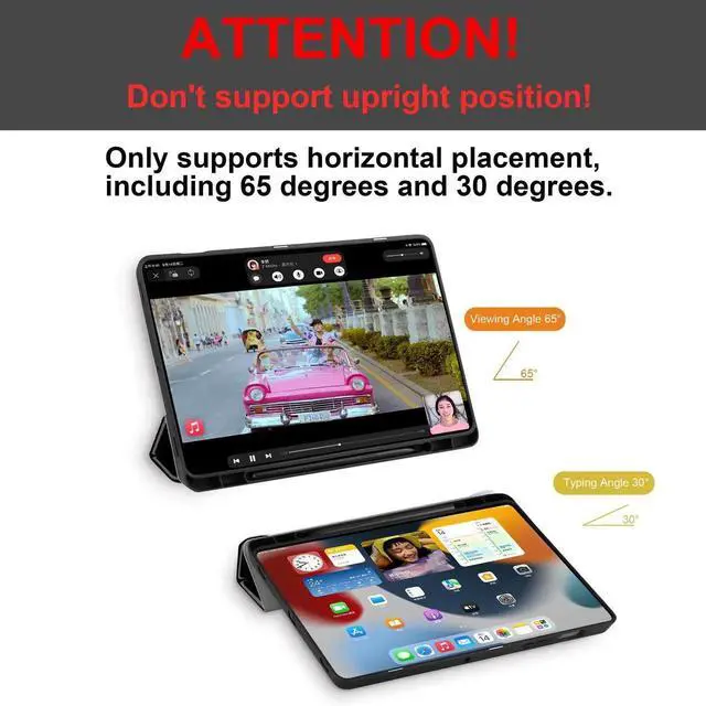 Characteristic: 1. The case is made of premium PU exterior, microfiber lining and soft TPU back cover 2. Case automatically wakes your tablet when opened and puts it to sleep when closed 3. You can easily fold the cover into different positions to create a stand for reading, viewing, typing, or making FaceTime calls 4. Built-in pencil holder, grab your tablet pencil effortlessly whenever you want, easily carry your tablet pencil with your device 5. Easy to Installation and remove 6. Convenient to use all the controls and features