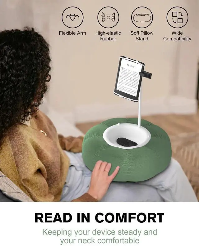 Lap Kindle Pillow Stand with Silicone Holder for Kindle Accessories and Phones ( 4.7" -8") & Adjustable iPad Stand for Desk with Snack Bowl for Tablets(8"- 15.5" )-Ideal for Hands-Free Reading