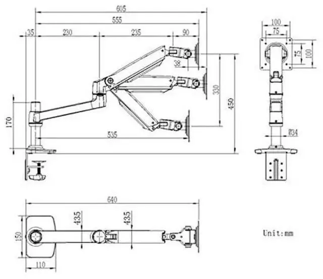 Arm swivel: 360°; Monitor can stop at any angel with mechanical spring;