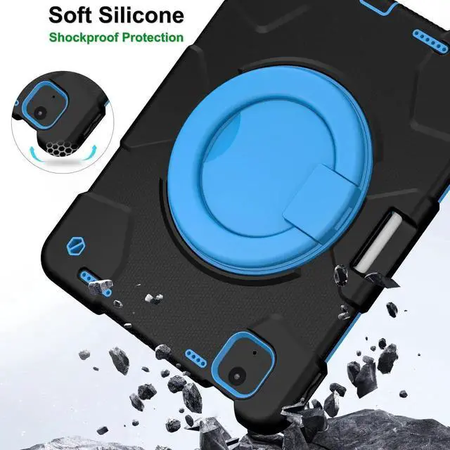 Andnary Case for iPad Air 11 inch Case M3/M2 (2025/2024) 6th Generation, Heavy Duty Protective with Pencil Holder, Stand, Hand Strap, Shoulder Strap, Black+Blue