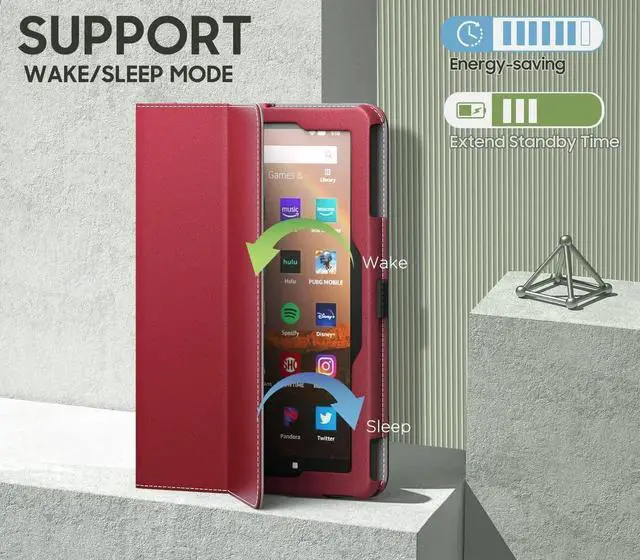 MoKo Case Fits All-New Amazon Kindle Fire HD 8 & 8 Plus Tablet (12th Generation/10th Generation, 2024/2022/2020 Release) 8", Slim Folding Stand Cover with Auto Wake/Sleep, Red