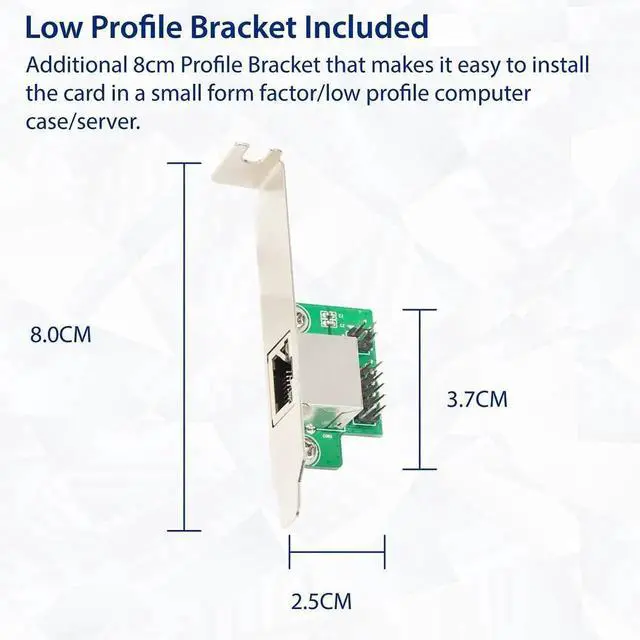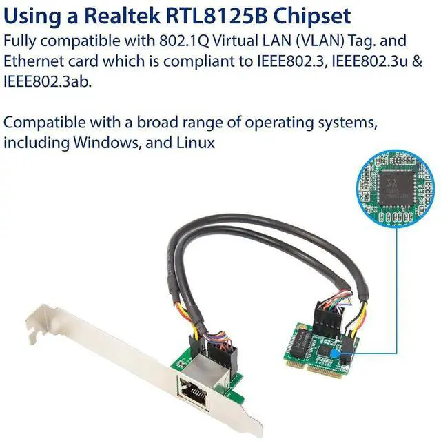 Provides 2.5 Gigabit Ethernet Connectivity to Windows PCs. Simple way to add or expand 2.5 Gigabit Ethernet connectivity to any compatible computer. It is suitable for multiple market segments and emerging applications, such as desktop, mobile, workstation, server, communications platforms, and embedded applications.