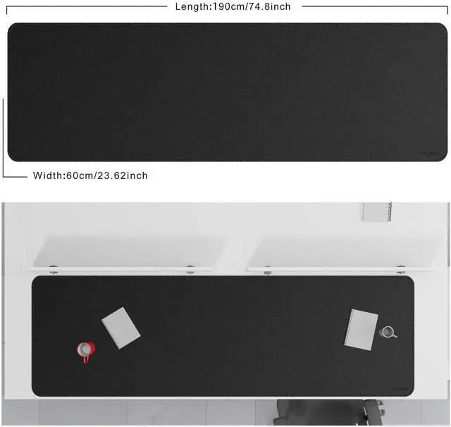 Super Large Surface: Maximize productivity with a generously sized 190x60cm (74.8"x23.6") surface that accommodates multi-device setups. Easily fit a laptop, full-sized keyboard, gaming mouse, and notebooks while maintaining an organized, clutter-free zone.
