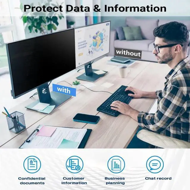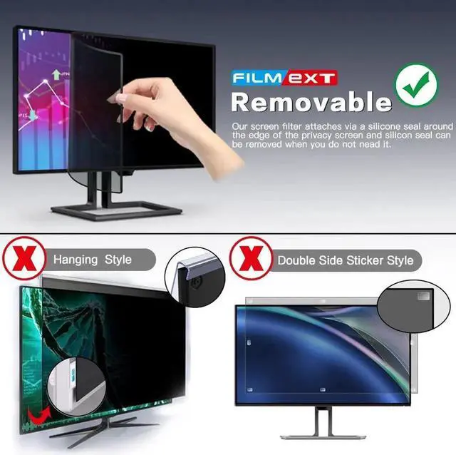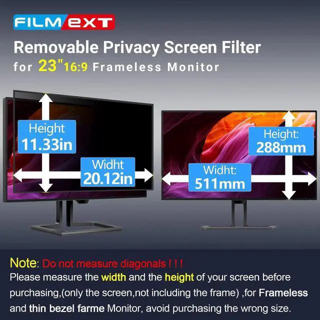 FILMEXT [2023 Upgrade Computer Privacy Screen Shield for 23 inch 16:9 Frameless Monitor, Anti Spy Blue Light Filter, Bubble Free, Easy On/Off Screen Protector for Computer Monitor
