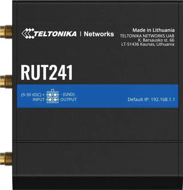 - Package includes: Router RUT241, 9 W PSU, 2 x LTE antennas (swivel, SMA male), 1 x Wi-Fi antenna (swivel, RP-SMA male), Ethernet cable ( 1.5 m), SIM Adapter kit, and QSG (Quick Start Guide)