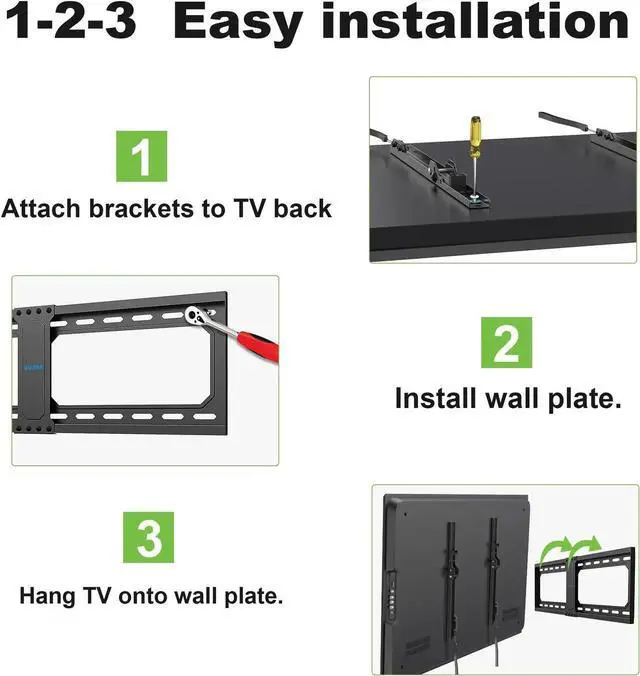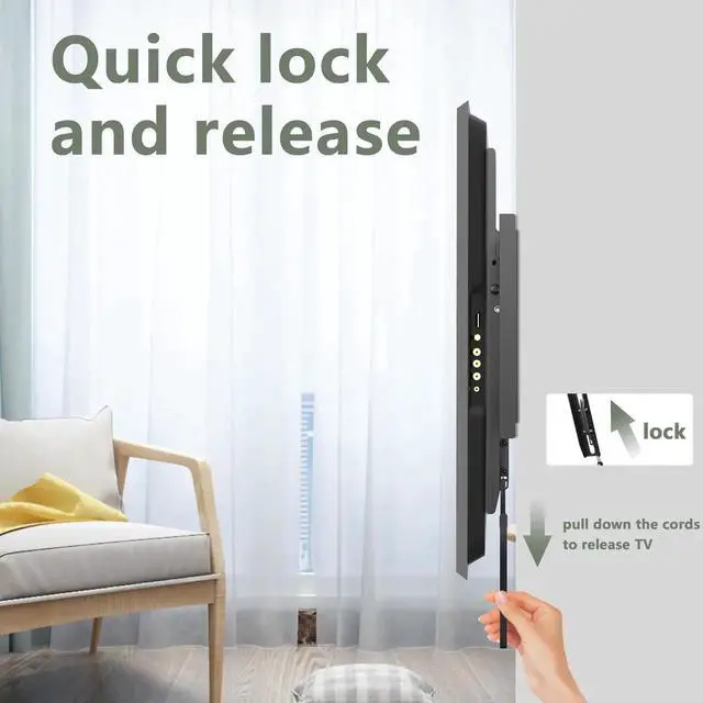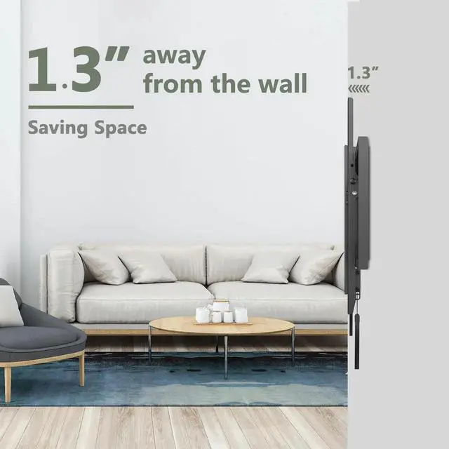 Features with: -9º tilt Angle adjustment helps to prevent reflections and glare.;TV wall mount frees up so much floor space when your TV is on the wall.TV back 1.3" away from the wall.Quick disconnect pull straps help to easily remove the TV from the mount.