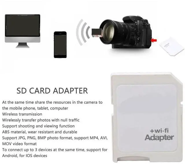 ASHATA Memory Card Adapter for TF to SD Card WiFi Adapter, SD WiFi Memory Card, TF to SD Card WiFi Adapter for Camera Photo Wireless Transmission to Phone Tablet, Connect Up to 3 Devices