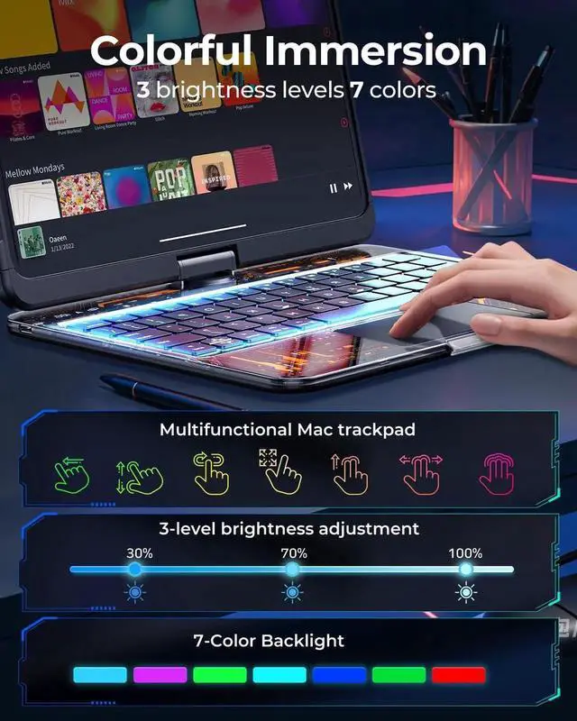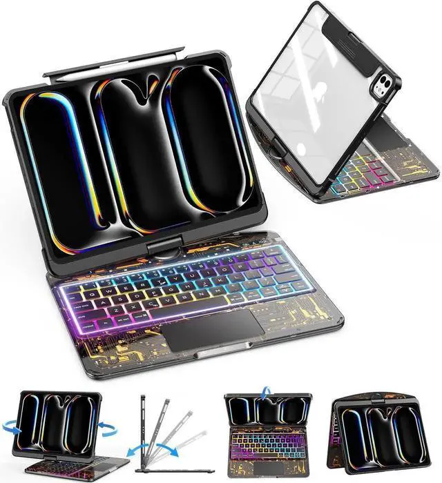 SIBEITU Keyboard Case for iPad Pro 11 Inch M5 2025 /M4 2024, Clear Wireless 360 Rotatable iPad Pro11 Cover, Multi-Touch Trackpad & Visible PCB High-Tech Design, 7-Color Backlight & 3-Brightness, Black