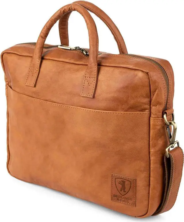 BERLINER BAGS Vintage Genuine Leather Laptop Bag Madrid, Work Bag, Briefcase for Men and Women - Brown