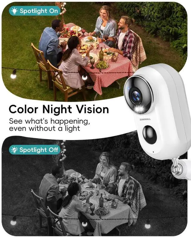 ZUMIMALL Security Cameras Wireless Outdoor, 4 Packs, 2K Cameras for Home Security, Outdoor/Indoor Camera Battery Powered, 2.4G WiFi, Magnetic Mount, 3MP Color Night Vision/Siren/PIR/AI/Cloud/Alexa