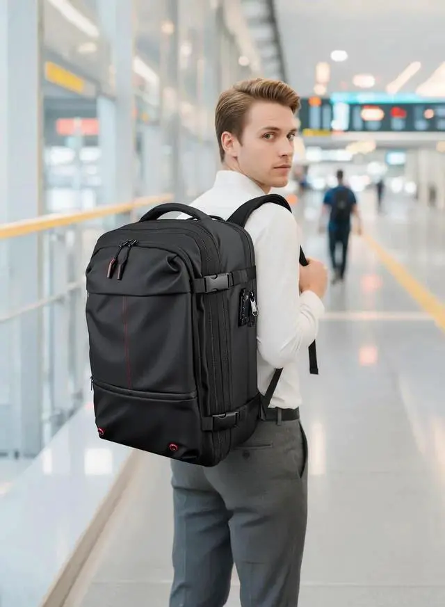 The backpack is designed with an ergonomic airflow system at the back, complete with thick, soft, and ventilated padding to alleviate stress on your shoulders and neck, ensuring a more comfortable and relaxing trip.