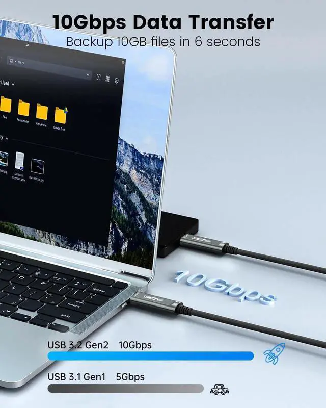 Wide CompatibilityThe USB C Cable supports up to 10Gbps bandwidth transmission speed, only data transmission,