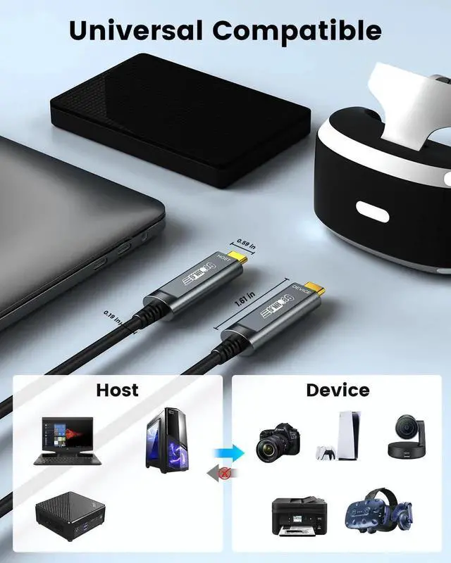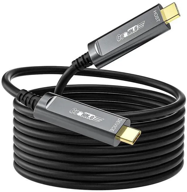 Fiber Optic USB 3.2 CableGEOHNG 10Gbps USB C to C active optical cable (AOC) uses optical fiber instead of copper as the high-speed signal transmission medium, without any signal loss/stuttering/black screen. Compared with traditional copper cable, it is softer, faster, lighter, and has perfect EMI/EMC technology.