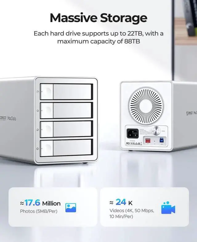 ORICO 4Bay RAID External Hard Drive Enclosure USB 3.0 for 2.5 / 3.5 Inch SATA HDD/SSD up to 5X 22TB Supports RAID 0/1/3/5/10/JBOD/Clone/ClearMode -9948RU3