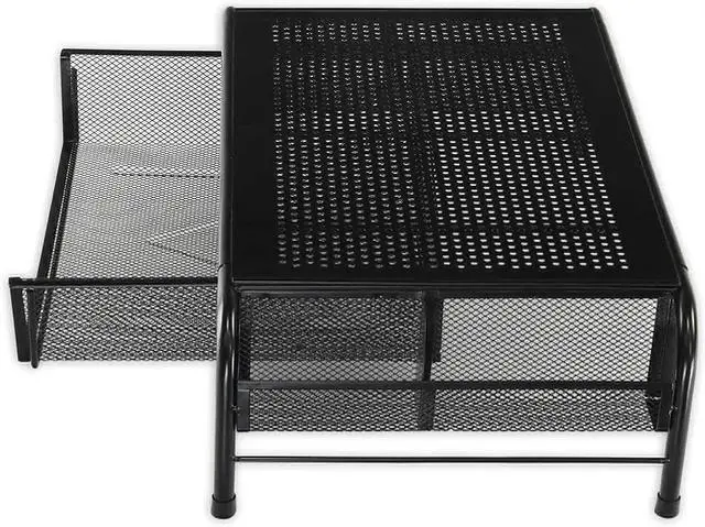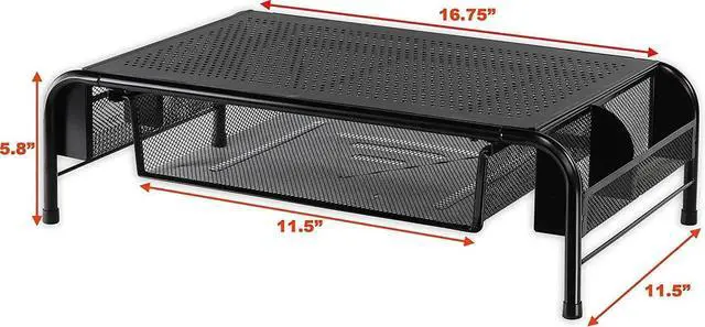 Simple Houseware Metal Desk Monitor Stand Riser with Organizer Drawer, Black