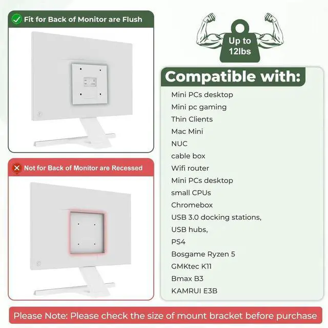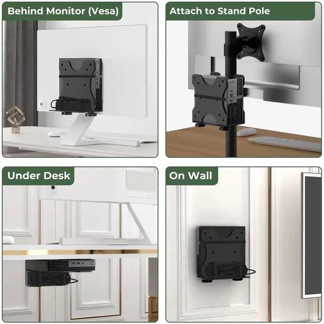 Adjustable Thin Client Mini PC Vesa Mount to Wall, Under Desk, Attached to Monitor Arm and Stand Pole for HP, Dell, Bosgame Ryzen 5, GMKtec K11, Bmax B3, KAMRUI E3B, NUC, Mac mini and Small CPUs