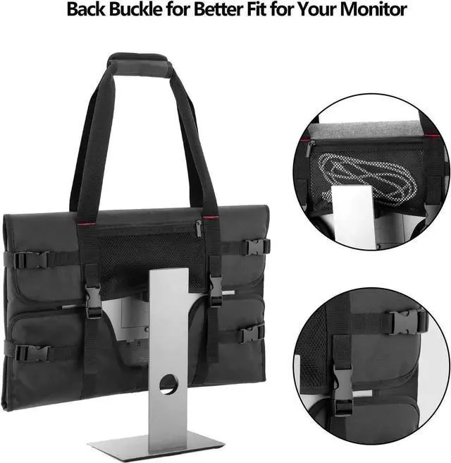CONVENIENT FEATURES: This computer monitor bag features multiple buckles on the back, which can be adjusted to fit your computer better.