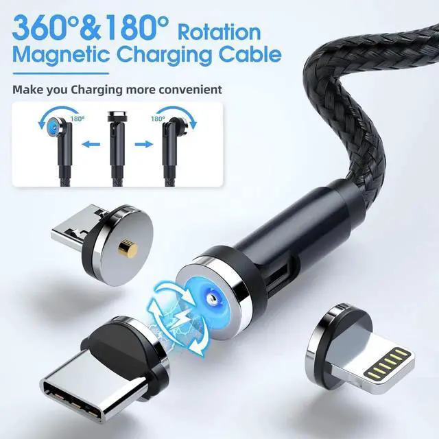 ![Alt view image 3 of 5 - Magnetic Charging Cable, 540° Rotating Magnetic Phone Charger [6-Pack, 3ft/3ft/3ft/6ft/6ft/10ft] 3 in 1 Magnetic Charger Cable Nylon Braided Magnetic USB Cable for iProduct/Micro USB/Type C Device](https://c1.neweggimages.com/productimage/nb640/C2GMS25122207SVXR00.jpg)