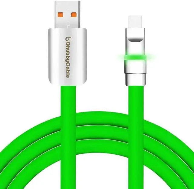 chubbycable Neon Chubby - Fast Charge Cable with Smart Light RGB Color Gradual Light Up LED USB Charging Cable, Green, USB-A to Type-C, 4.9 FT