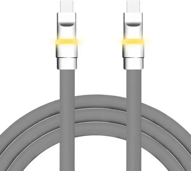 chubbycable Neon Chubby - Fast Charge Cable with Smart Light RGB Color Gradual Light Up LED USB Charging Cable, Gray, Type-C to Type-C, 8.5 FT