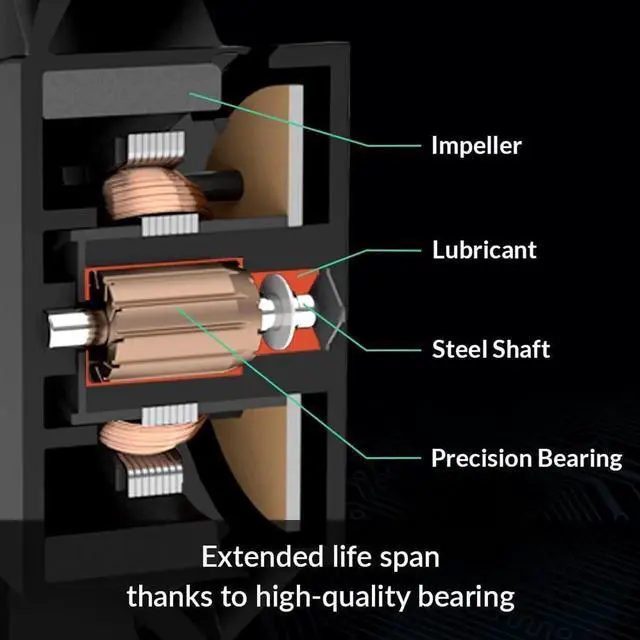 LONG SERVICE LIFE: The Fluid Dynamic Bearing comes with an oil capsule that avoids lubricant leakage, thus this bearing is as quiet as a sleeve bearing but comes with a higher service life