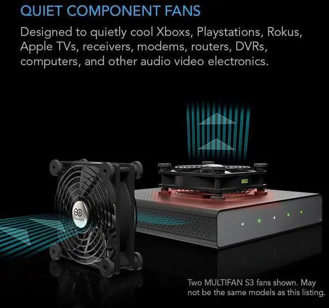 AC Infinity MULTIFAN S7-P, Quiet Dual 120mm AC-Powered Fan with Speed Control, UL-Certified for Receiver DVR PlayStation Xbox Component Cooling