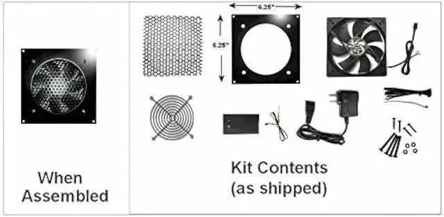 Single 120mm( 6.25" x 6.25" ) fan kit for cooling your cabinet or multimedia center.