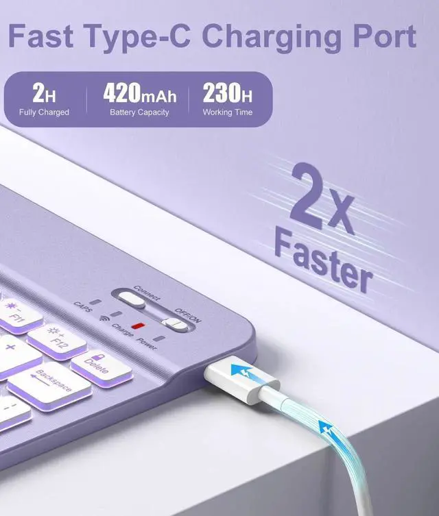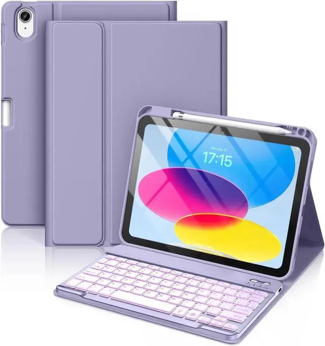 Hamile for iPad 11th 10th Generation Case with Keyboard - 7 Colors Backlit Wireless Detachable Folio Keyboard Cover with Pencil Holder for iPad 11-inch A16 2025 10th Gen 10.9 Inch 2022 (Lavender)