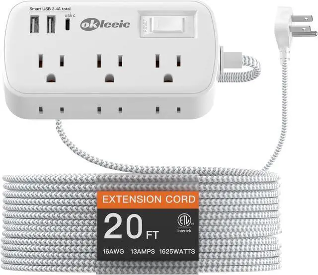 20 FT Long Power StripThe 20 FT (6M) power strip to the indoor extension cord provides extra outlets at optimal reach in home and office spaces. The braided cord is durable and only 0.15 inches thick, making it perfect for use under. carpets and through door gaps.