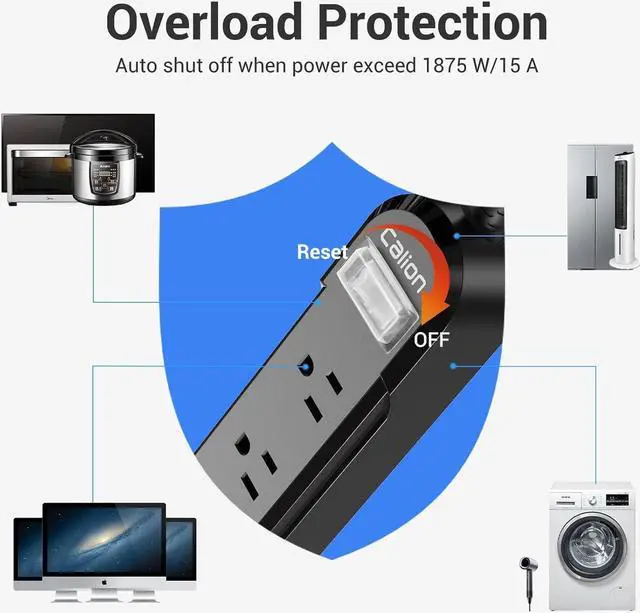Overload Protection & Flame Retardant: Our outdoor power strip is constructed using heat-retardant ABS/PC material and equipped with overload protection, ensuring the safety of your electronic devices; It automatically shuts off power when it exceeds 1875W/15A, preventing overload-induced fires