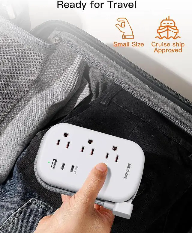 Compact for Travel 3.2 ft retractable power cord which makes it easy to storage, Compact Size( 5.5 * 3.4 * 1.8 in), and lightweight design to fit into luggage and bag The 3 additional USB ports help also get rid of your bulky adapters. Compact and lightweight, easy to carry, and best for travel.
