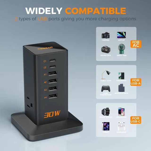 Surge Protector Tower: Equipped with overload protection, short-circuit protection, over-current protection, heat resistant and etc; this usb charger block multiple ports can protect your expensive electronics, providing you with a safe and reliable charging environment