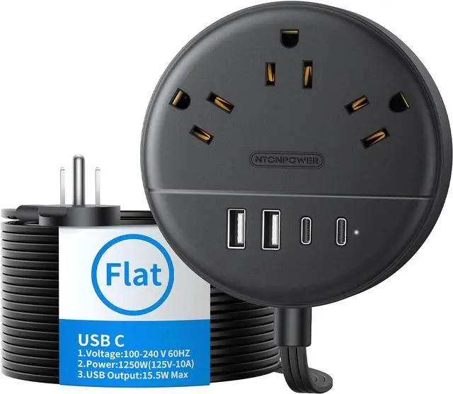Flat Cord & 45°Right Angle Flat Plug NTONPOWER power strip with USB ports adopts a 45°angle ultra-thin plug, so you no longer have to worry about blocking other wall sockets. The market-leading 0.35 -inch ultra-thin plug can also save more space and can be used even behind sofas and cabinets. The 0.11 -inch flat cord of the power strip with USB ports can be used in more places, and it is also compatible with the carpet or under the door.