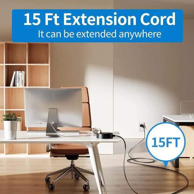 15Ft Extension CordThe 15 Ft flat extension cord gives you the flexibility to reach anywhere in the room. If you have only a few outlets in your house, you know how difficult it can be to charge your phones and tablets when you want to use an outlet anytime. The black extension cord provides a good solution for extending the outlet. Whether you are lying on the bed or sitting at the desk, the15Ft USB extension cord can help you quickly charge multiple devices in an efficient and flexible way