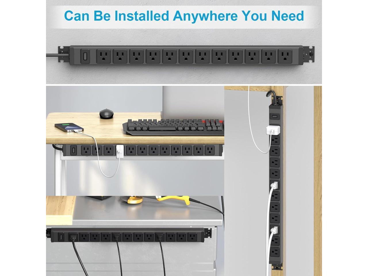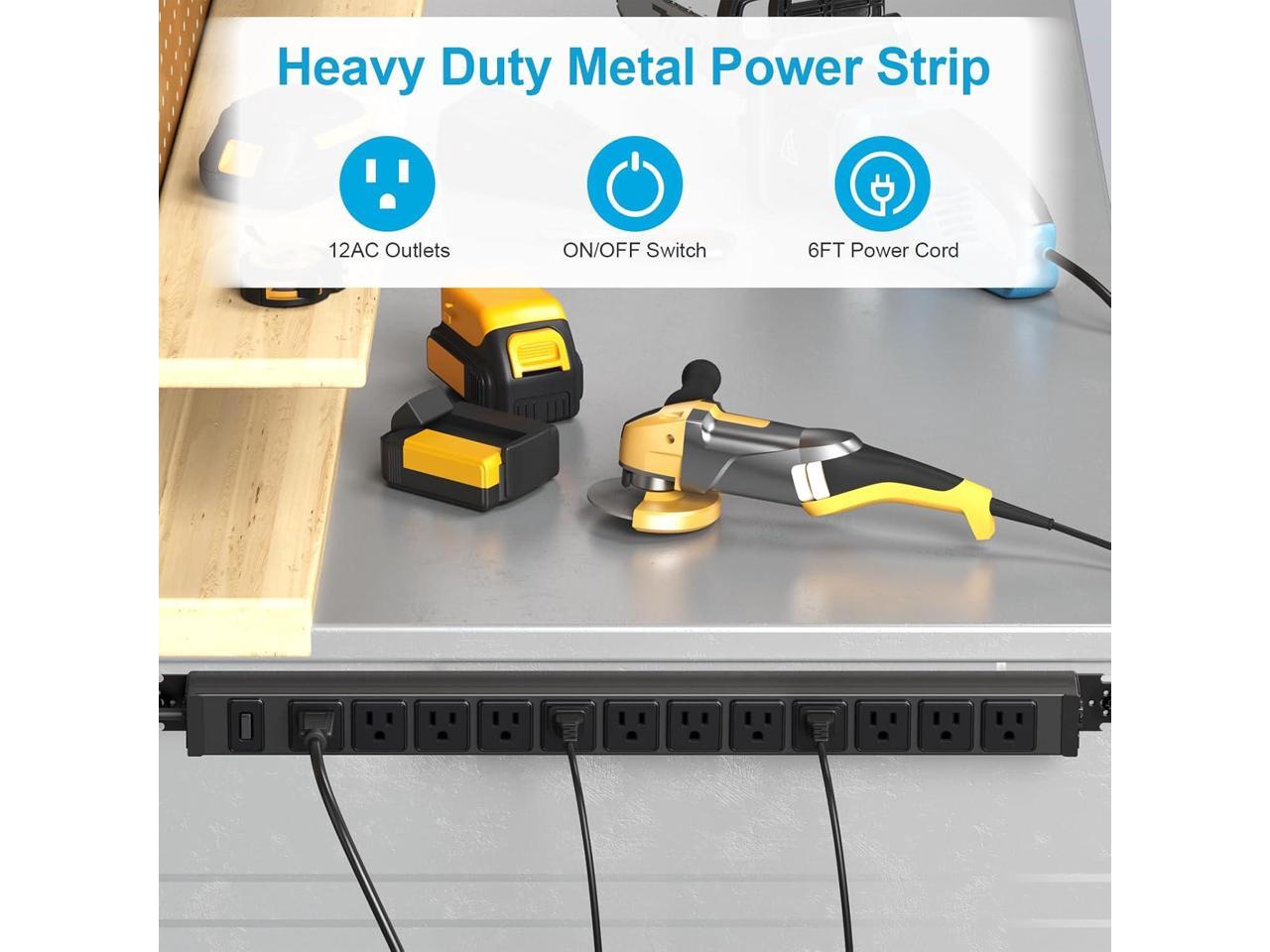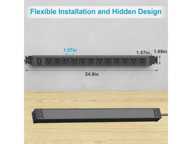 - Metal Wide Spaced Power Strip: It has 12 US standard AC outlets, 15A, 125V, 60Hz, 1875W, the distance between center-to-center of AC outlets, the outlets are further apart allowing for bigger plugs to be plugged in 1.57inch, Suitable for large plugs. with screw holes and 4 screws to help mount, great addition to the w
