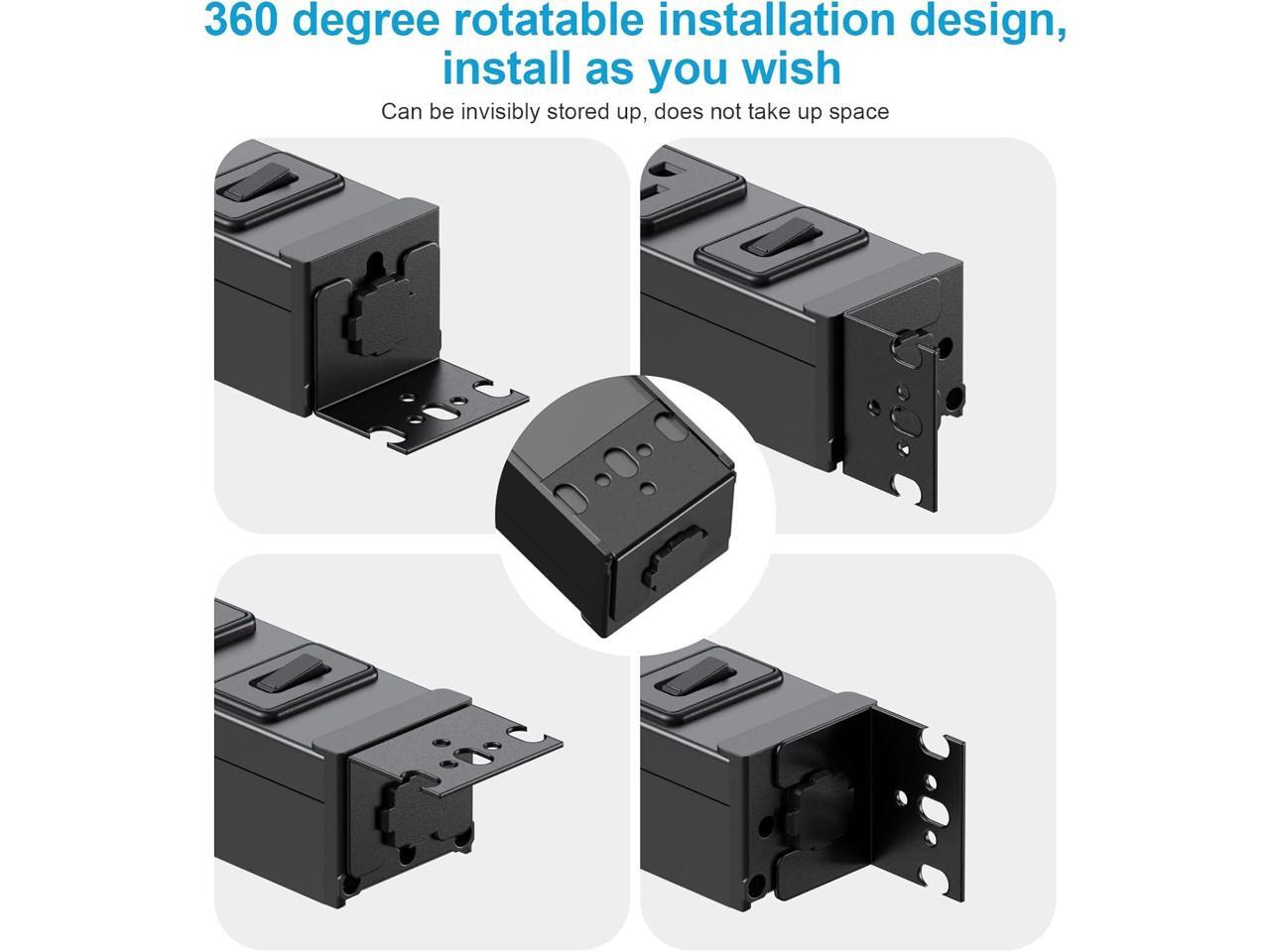 HHSOET 360° Rotating 12 Outlet Mountable Power Strip, Metal Gaming Table Mounted Outlet Strip, Heavy Duty Wall Mount Surge Protector with Switch, Works Great and Very Versatile, 6ft Power Cord.Black