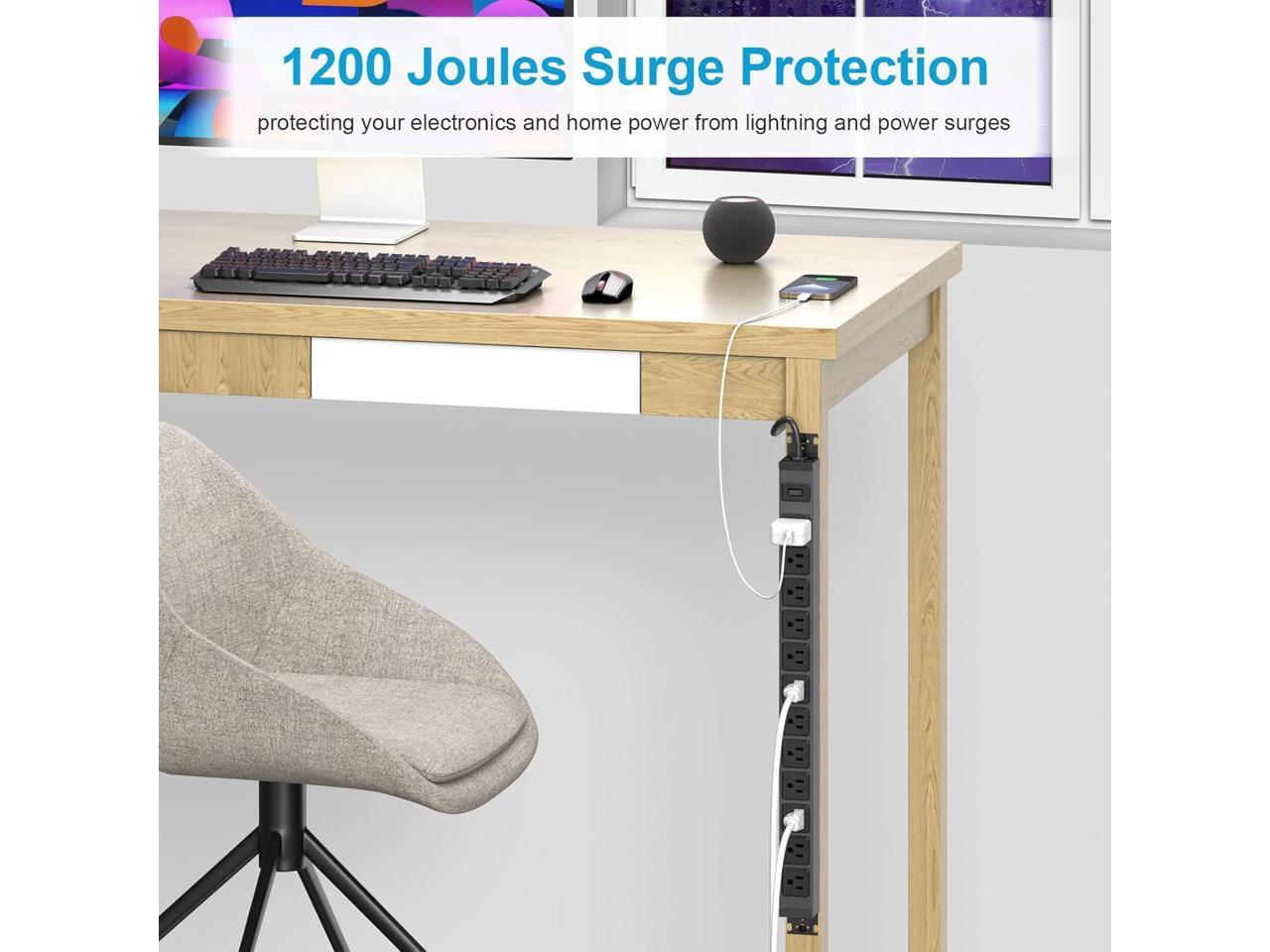 - Industrial Surge Protector: This power strip comes equipped with 1200J surge protector that safeguards your devices from sudden power spikes and fluctuations. The 6ft power cord provides sufficient reach to connect the power strip to a nearby outlet without any limitations. Surge protection and multiple outlets allow all devices to be plugged in with confidence.